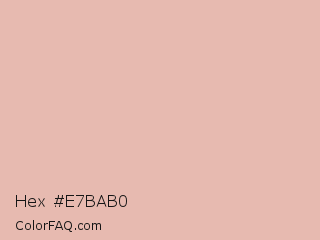 Hex #e7bab0 Color is a light red color and the nearest color is Shilo #e8b9b3. Hex code #e7bab0 and RGB value is rgb(231,186,176). In RGB color space, this color is composed of 91% red, 73% green, 69% blue, In CMYK color space, this color is composed of 0% cyan, 19% magenta, 24% yellow , 9% black , In HSL color space, this color has a hue angle of 11° , 53% saturation and 80% lightness.