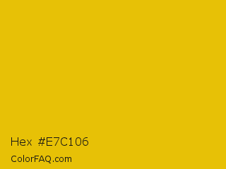 Hex #e7c106 Color is a normal yellow color and the nearest color is Corn #e7bf05. Hex code #e7c106 and RGB value is rgb(231,193,6). In RGB color space, this color is composed of 91% red, 76% green, 2% blue, In CMYK color space, this color is composed of 0% cyan, 16% magenta, 97% yellow , 9% black , In HSL color space, this color has a hue angle of 50° , 95% saturation and 46% lightness.