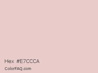 Hex #e7ccca Color is a very light red color and the nearest color is Dust Storm #e5ccc9. Hex code #e7ccca and RGB value is rgb(231,204,202). In RGB color space, this color is composed of 91% red, 80% green, 79% blue, In CMYK color space, this color is composed of 0% cyan, 12% magenta, 13% yellow , 9% black , In HSL color space, this color has a hue angle of 4° , 38% saturation and 85% lightness.