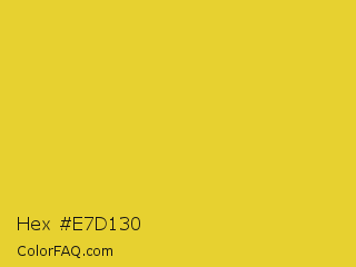 Hex #e7d130 Color is a normal yellow color and the nearest color is Golden Dream #f0d52d. Hex code #e7d130 and RGB value is rgb(231,209,48). In RGB color space, this color is composed of 91% red, 82% green, 19% blue, In CMYK color space, this color is composed of 0% cyan, 10% magenta, 79% yellow , 9% black , In HSL color space, this color has a hue angle of 53° , 79% saturation and 55% lightness.