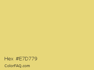Hex #e7d779 Color is a light yellow color and the nearest color is Straw #e4d96f. Hex code #e7d779 and RGB value is rgb(231,215,121). In RGB color space, this color is composed of 91% red, 84% green, 47% blue, In CMYK color space, this color is composed of 0% cyan, 7% magenta, 48% yellow , 9% black , In HSL color space, this color has a hue angle of 51° , 70% saturation and 69% lightness.