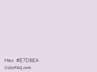 Hex #e7d8ea Color is a very light purple color and the nearest color is Snuff #e2d8ed. Hex code #e7d8ea and RGB value is rgb(231,216,234). In RGB color space, this color is composed of 91% red, 85% green, 92% blue, In CMYK color space, this color is composed of 1% cyan, 8% magenta, 0% yellow , 8% black , In HSL color space, this color has a hue angle of 290° , 30% saturation and 88% lightness.