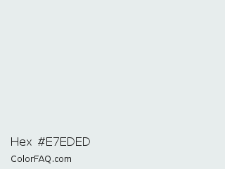 Hex #e7eded Color is a very light cyan color and the nearest color is Mystic #e2ebed. Hex code #e7eded and RGB value is rgb(231,237,237). In RGB color space, this color is composed of 91% red, 93% green, 93% blue, In CMYK color space, this color is composed of 3% cyan, 0% magenta, 0% yellow , 7% black , In HSL color space, this color has a hue angle of 180° , 14% saturation and 92% lightness.