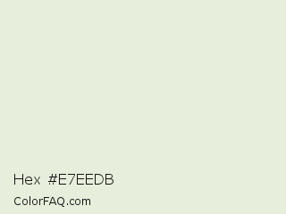 Hex #e7eedb Color is a very light green color and the nearest color is Green White #e8ebe0. Hex code #e7eedb and RGB value is rgb(231,238,219). In RGB color space, this color is composed of 91% red, 93% green, 86% blue, In CMYK color space, this color is composed of 3% cyan, 0% magenta, 8% yellow , 7% black , In HSL color space, this color has a hue angle of 82° , 36% saturation and 90% lightness.