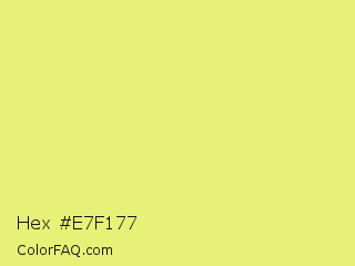 Hex #e7f177 Color is a light yellow color and the nearest color is Manz #eeef78. Hex code #e7f177 and RGB value is rgb(231,241,119). In RGB color space, this color is composed of 91% red, 95% green, 47% blue, In CMYK color space, this color is composed of 4% cyan, 0% magenta, 51% yellow , 5% black , In HSL color space, this color has a hue angle of 65° , 81% saturation and 71% lightness.