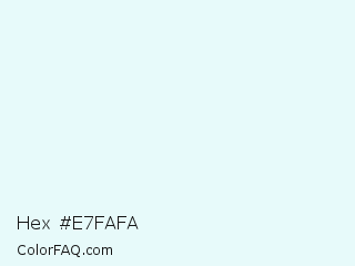 Hex #e7fafa Color is a very light cyan color and the nearest color is Polar #e5f9f6. Hex code #e7fafa and RGB value is rgb(231,250,250). In RGB color space, this color is composed of 91% red, 98% green, 98% blue, In CMYK color space, this color is composed of 8% cyan, 0% magenta, 0% yellow , 2% black , In HSL color space, this color has a hue angle of 180° , 66% saturation and 94% lightness.