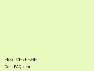 Hex #e7fbbe Color is a very light green color and the nearest color is Tusk #eef3c3. Hex code #e7fbbe and RGB value is rgb(231,251,190). In RGB color space, this color is composed of 91% red, 98% green, 75% blue, In CMYK color space, this color is composed of 8% cyan, 0% magenta, 24% yellow , 2% black , In HSL color space, this color has a hue angle of 80° , 88% saturation and 86% lightness.
