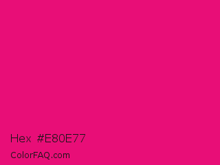 Hex #e80e77 Color is a normal rose color and the nearest color is Red Purple #e40078. Hex code #e80e77 and RGB value is rgb(232,14,119). In RGB color space, this color is composed of 91% red, 5% green, 47% blue, In CMYK color space, this color is composed of 0% cyan, 94% magenta, 49% yellow , 9% black , In HSL color space, this color has a hue angle of 331° , 89% saturation and 48% lightness.