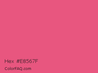 Hex #e8567f Color is a light rose color and the nearest color is Dark Pink #e75480. Hex code #e8567f and RGB value is rgb(232,86,127). In RGB color space, this color is composed of 91% red, 34% green, 50% blue, In CMYK color space, this color is composed of 0% cyan, 63% magenta, 45% yellow , 9% black , In HSL color space, this color has a hue angle of 343° , 76% saturation and 62% lightness.