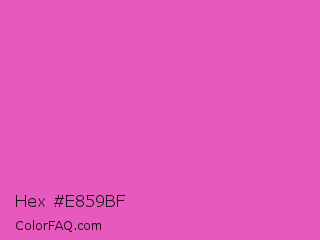 Hex #e859bf Color is a light magenta color and the nearest color is Light Deep Pink #ff5ccd. Hex code #e859bf and RGB value is rgb(232,89,191). In RGB color space, this color is composed of 91% red, 35% green, 75% blue, In CMYK color space, this color is composed of 0% cyan, 62% magenta, 18% yellow , 9% black , In HSL color space, this color has a hue angle of 317° , 76% saturation and 63% lightness.