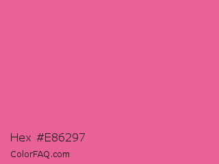 Hex #e86297 Color is a light rose color and the nearest color is Light Crimson #f56991. Hex code #e86297 and RGB value is rgb(232,98,151). In RGB color space, this color is composed of 91% red, 38% green, 59% blue, In CMYK color space, this color is composed of 0% cyan, 58% magenta, 35% yellow , 9% black , In HSL color space, this color has a hue angle of 336° , 74% saturation and 65% lightness.