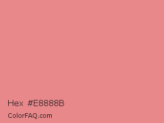 Hex #e8888b Color is a light red color and the nearest color is Ruddy Pink #e18e96. Hex code #e8888b and RGB value is rgb(232,136,139). In RGB color space, this color is composed of 91% red, 53% green, 55% blue, In CMYK color space, this color is composed of 0% cyan, 41% magenta, 40% yellow , 9% black , In HSL color space, this color has a hue angle of 358° , 68% saturation and 72% lightness.