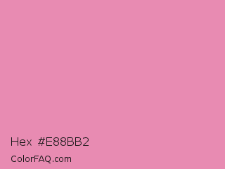 Hex #e88bb2 Color is a light rose color and the nearest color is Light Thulian Pink #e68fac. Hex code #e88bb2 and RGB value is rgb(232,139,178). In RGB color space, this color is composed of 91% red, 55% green, 70% blue, In CMYK color space, this color is composed of 0% cyan, 40% magenta, 23% yellow , 9% black , In HSL color space, this color has a hue angle of 335° , 67% saturation and 73% lightness.