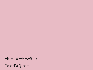 Hex #e8bbc5 Color is a very light red color and the nearest color is Pink Flare #e1c0c8. Hex code #e8bbc5 and RGB value is rgb(232,187,197). In RGB color space, this color is composed of 91% red, 73% green, 77% blue, In CMYK color space, this color is composed of 0% cyan, 19% magenta, 15% yellow , 9% black , In HSL color space, this color has a hue angle of 347° , 49% saturation and 82% lightness.
