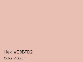 Hex #e8bfb2 Color is a light red color and the nearest color is Rose Fog #e7bcb4. Hex code #e8bfb2 and RGB value is rgb(232,191,178). In RGB color space, this color is composed of 91% red, 75% green, 70% blue, In CMYK color space, this color is composed of 0% cyan, 18% magenta, 23% yellow , 9% black , In HSL color space, this color has a hue angle of 14° , 54% saturation and 80% lightness.