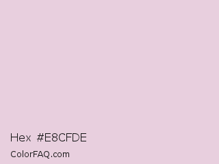 Hex #e8cfde Color is a very light magenta color and the nearest color is Twilight #e4cfde. Hex code #e8cfde and RGB value is rgb(232,207,222). In RGB color space, this color is composed of 91% red, 81% green, 87% blue, In CMYK color space, this color is composed of 0% cyan, 11% magenta, 4% yellow , 9% black , In HSL color space, this color has a hue angle of 324° , 35% saturation and 86% lightness.