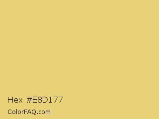 Hex #e8d177 Color is a light yellow color and the nearest color is Rob Roy #eac674. Hex code #e8d177 and RGB value is rgb(232,209,119). In RGB color space, this color is composed of 91% red, 82% green, 47% blue, In CMYK color space, this color is composed of 0% cyan, 10% magenta, 49% yellow , 9% black , In HSL color space, this color has a hue angle of 48° , 71% saturation and 69% lightness.