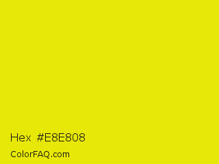 Hex #e8e808 Color is a normal yellow color and the nearest color is Titanium Yellow #eee600. Hex code #e8e808 and RGB value is rgb(232,232,8). In RGB color space, this color is composed of 91% red, 91% green, 3% blue, In CMYK color space, this color is composed of 0% cyan, 0% magenta, 97% yellow , 9% black , In HSL color space, this color has a hue angle of 60° , 93% saturation and 47% lightness.