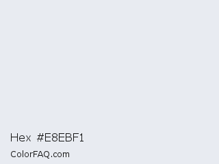 Hex #e8ebf1 Color is a very light blue color and the nearest color is Mystic #e2ebed. Hex code #e8ebf1 and RGB value is rgb(232,235,241). In RGB color space, this color is composed of 91% red, 92% green, 95% blue, In CMYK color space, this color is composed of 4% cyan, 2% magenta, 0% yellow , 5% black , In HSL color space, this color has a hue angle of 220° , 24% saturation and 93% lightness.