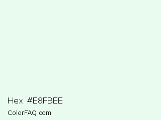 Hex #e8fbee Color is a almost white green color and the nearest color is Ottoman #e9f8ed. Hex code #e8fbee and RGB value is rgb(232,251,238). In RGB color space, this color is composed of 91% red, 98% green, 93% blue, In CMYK color space, this color is composed of 8% cyan, 0% magenta, 5% yellow , 2% black , In HSL color space, this color has a hue angle of 139° , 70% saturation and 95% lightness.