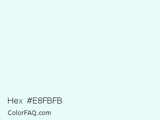 Hex #e8fbfb Color is a almost white cyan color and the nearest color is Clear Day #e9fffd. Hex code #e8fbfb and RGB value is rgb(232,251,251). In RGB color space, this color is composed of 91% red, 98% green, 98% blue, In CMYK color space, this color is composed of 8% cyan, 0% magenta, 0% yellow , 2% black , In HSL color space, this color has a hue angle of 180° , 70% saturation and 95% lightness.