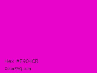 Hex #e904cb Color is a normal magenta color and the nearest color is Purple Pizzazz #ff00cc. Hex code #e904cb and RGB value is rgb(233,4,203). In RGB color space, this color is composed of 91% red, 2% green, 80% blue, In CMYK color space, this color is composed of 0% cyan, 98% magenta, 13% yellow , 9% black , In HSL color space, this color has a hue angle of 308° , 97% saturation and 46% lightness.