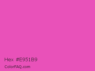 Hex #e951b9 Color is a light magenta color and the nearest color is Brilliant Rose #f653a6. Hex code #e951b9 and RGB value is rgb(233,81,185). In RGB color space, this color is composed of 91% red, 32% green, 73% blue, In CMYK color space, this color is composed of 0% cyan, 65% magenta, 21% yellow , 9% black , In HSL color space, this color has a hue angle of 319° , 78% saturation and 62% lightness.