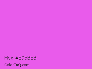Hex #e95beb Color is a light magenta color and the nearest color is Purple Pizzazz #fe4eda. Hex code #e95beb and RGB value is rgb(233,91,235). In RGB color space, this color is composed of 91% red, 36% green, 92% blue, In CMYK color space, this color is composed of 1% cyan, 61% magenta, 0% yellow , 8% black , In HSL color space, this color has a hue angle of 299° , 78% saturation and 64% lightness.