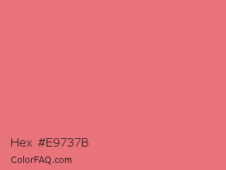 Hex #e9737b Color is a light red color and the nearest color is Candy Pink #e4717a. Hex code #e9737b and RGB value is rgb(233,115,123). In RGB color space, this color is composed of 91% red, 45% green, 48% blue, In CMYK color space, this color is composed of 0% cyan, 51% magenta, 47% yellow , 9% black , In HSL color space, this color has a hue angle of 356° , 73% saturation and 68% lightness.
