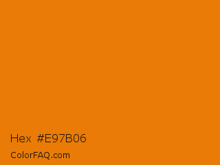Hex #e97b06 Color is a normal orange color and the nearest color is Tahiti Gold #e97c07. Hex code #e97b06 and RGB value is rgb(233,123,6). In RGB color space, this color is composed of 91% red, 48% green, 2% blue, In CMYK color space, this color is composed of 0% cyan, 47% magenta, 97% yellow , 9% black , In HSL color space, this color has a hue angle of 31° , 95% saturation and 47% lightness.