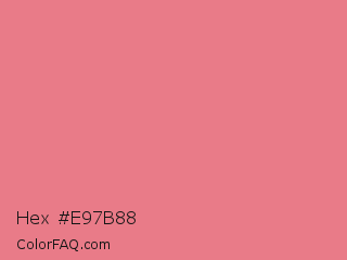 Hex #e97b88 Color is a light red color and the nearest color is Light Coral #f08080. Hex code #e97b88 and RGB value is rgb(233,123,136). In RGB color space, this color is composed of 91% red, 48% green, 53% blue, In CMYK color space, this color is composed of 0% cyan, 47% magenta, 42% yellow , 9% black , In HSL color space, this color has a hue angle of 353° , 71% saturation and 70% lightness.
