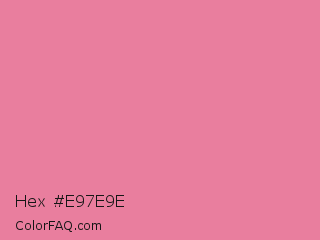 Hex #e97e9e Color is a light rose color and the nearest color is Bright Blush #e47698. Hex code #e97e9e and RGB value is rgb(233,126,158). In RGB color space, this color is composed of 91% red, 49% green, 62% blue, In CMYK color space, this color is composed of 0% cyan, 46% magenta, 32% yellow , 9% black , In HSL color space, this color has a hue angle of 342° , 71% saturation and 70% lightness.