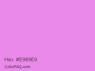Hex #e989e9 Color is a light magenta color and the nearest color is Lavender Magenta #ee82ee. Hex code #e989e9 and RGB value is rgb(233,137,233). In RGB color space, this color is composed of 91% red, 54% green, 91% blue, In CMYK color space, this color is composed of 0% cyan, 41% magenta, 0% yellow , 9% black , In HSL color space, this color has a hue angle of 300° , 69% saturation and 73% lightness.