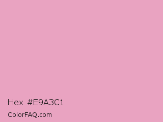 Hex #e9a3c1 Color is a light rose color and the nearest color is Kobi #e79fc4. Hex code #e9a3c1 and RGB value is rgb(233,163,193). In RGB color space, this color is composed of 91% red, 64% green, 76% blue, In CMYK color space, this color is composed of 0% cyan, 30% magenta, 17% yellow , 9% black , In HSL color space, this color has a hue angle of 334° , 61% saturation and 78% lightness.