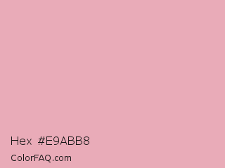 Hex #e9abb8 Color is a light red color and the nearest color is Shilo #e8b9b3. Hex code #e9abb8 and RGB value is rgb(233,171,184). In RGB color space, this color is composed of 91% red, 67% green, 72% blue, In CMYK color space, this color is composed of 0% cyan, 27% magenta, 21% yellow , 9% black , In HSL color space, this color has a hue angle of 347° , 58% saturation and 79% lightness.