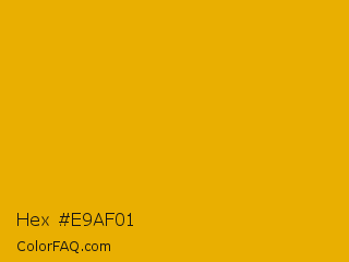 Hex #e9af01 Color is a normal orange color and the nearest color is Corn #e7bf05. Hex code #e9af01 and RGB value is rgb(233,175,1). In RGB color space, this color is composed of 91% red, 69% green, 0% blue, In CMYK color space, this color is composed of 0% cyan, 25% magenta, 100% yellow , 9% black , In HSL color space, this color has a hue angle of 45° , 99% saturation and 46% lightness.
