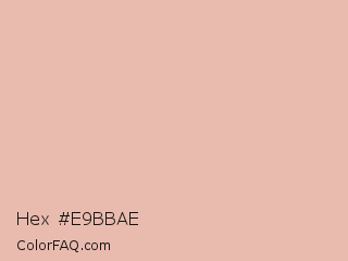 Hex #e9bbae Color is a light red color and the nearest color is Shilo #e8b9b3. Hex code #e9bbae and RGB value is rgb(233,187,174). In RGB color space, this color is composed of 91% red, 73% green, 68% blue, In CMYK color space, this color is composed of 0% cyan, 20% magenta, 25% yellow , 9% black , In HSL color space, this color has a hue angle of 13° , 57% saturation and 80% lightness.
