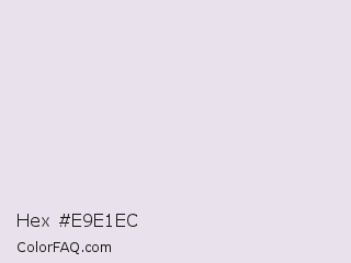 Hex #e9e1ec Color is a very light purple color and the nearest color is Prim #f0e2ec. Hex code #e9e1ec and RGB value is rgb(233,225,236). In RGB color space, this color is composed of 91% red, 88% green, 93% blue, In CMYK color space, this color is composed of 1% cyan, 5% magenta, 0% yellow , 7% black , In HSL color space, this color has a hue angle of 284° , 22% saturation and 90% lightness.