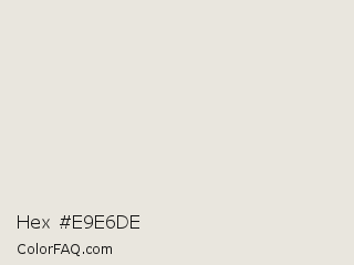 Hex #e9e6de Color is a very light orange color and the nearest color is Green White #e8ebe0. Hex code #e9e6de and RGB value is rgb(233,230,222). In RGB color space, this color is composed of 91% red, 90% green, 87% blue, In CMYK color space, this color is composed of 0% cyan, 1% magenta, 5% yellow , 9% black , In HSL color space, this color has a hue angle of 44° , 20% saturation and 89% lightness.