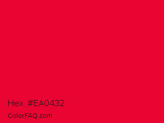 Hex #ea0432 Color is a normal red color and the nearest color is Medium Candy Apple Red #e2062c. Hex code #ea0432 and RGB value is rgb(234,4,50). In RGB color space, this color is composed of 92% red, 2% green, 20% blue, In CMYK color space, this color is composed of 0% cyan, 98% magenta, 79% yellow , 8% black , In HSL color space, this color has a hue angle of 348° , 97% saturation and 47% lightness.