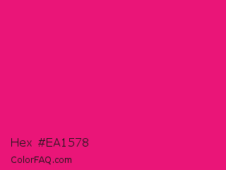 Hex #ea1578 Color is a normal rose color and the nearest color is Vivid Cerise #da1d81. Hex code #ea1578 and RGB value is rgb(234,21,120). In RGB color space, this color is composed of 92% red, 8% green, 47% blue, In CMYK color space, this color is composed of 0% cyan, 91% magenta, 49% yellow , 8% black , In HSL color space, this color has a hue angle of 332° , 84% saturation and 50% lightness.