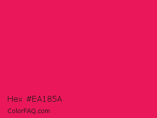 Hex #ea185a Color is a normal rose color and the nearest color is Ruby #e0115f. Hex code #ea185a and RGB value is rgb(234,24,90). In RGB color space, this color is composed of 92% red, 9% green, 35% blue, In CMYK color space, this color is composed of 0% cyan, 90% magenta, 62% yellow , 8% black , In HSL color space, this color has a hue angle of 341° , 83% saturation and 51% lightness.