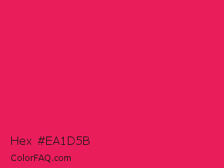 Hex #ea1d5b Color is a normal rose color and the nearest color is Red Crayola #ee204d. Hex code #ea1d5b and RGB value is rgb(234,29,91). In RGB color space, this color is composed of 92% red, 11% green, 36% blue, In CMYK color space, this color is composed of 0% cyan, 88% magenta, 61% yellow , 8% black , In HSL color space, this color has a hue angle of 342° , 83% saturation and 52% lightness.