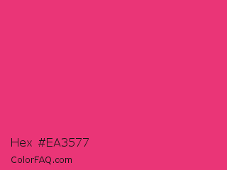 Hex #ea3577 Color is a normal rose color and the nearest color is Cerise Pink #ec3b83. Hex code #ea3577 and RGB value is rgb(234,53,119). In RGB color space, this color is composed of 92% red, 21% green, 47% blue, In CMYK color space, this color is composed of 0% cyan, 77% magenta, 49% yellow , 8% black , In HSL color space, this color has a hue angle of 338° , 81% saturation and 56% lightness.