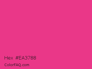 Hex #ea3788 Color is a normal rose color and the nearest color is Cerise Pink #ec3b83. Hex code #ea3788 and RGB value is rgb(234,55,136). In RGB color space, this color is composed of 92% red, 22% green, 53% blue, In CMYK color space, this color is composed of 0% cyan, 76% magenta, 42% yellow , 8% black , In HSL color space, this color has a hue angle of 333° , 81% saturation and 57% lightness.