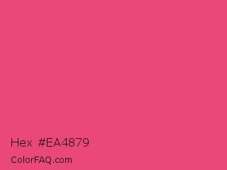 Hex #ea4879 Color is a normal rose color and the nearest color is Dark Pink #e75480. Hex code #ea4879 and RGB value is rgb(234,72,121). In RGB color space, this color is composed of 92% red, 28% green, 47% blue, In CMYK color space, this color is composed of 0% cyan, 69% magenta, 48% yellow , 8% black , In HSL color space, this color has a hue angle of 342° , 79% saturation and 60% lightness.