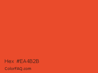 Hex #ea4b2b Color is a normal red color and the nearest color is Pomegranate #f34723. Hex code #ea4b2b and RGB value is rgb(234,75,43). In RGB color space, this color is composed of 92% red, 29% green, 17% blue, In CMYK color space, this color is composed of 0% cyan, 68% magenta, 82% yellow , 8% black , In HSL color space, this color has a hue angle of 10° , 82% saturation and 54% lightness.
