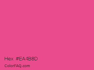 Hex #ea4b8d Color is a light rose color and the nearest color is French Rose #f64a8a. Hex code #ea4b8d and RGB value is rgb(234,75,141). In RGB color space, this color is composed of 92% red, 29% green, 55% blue, In CMYK color space, this color is composed of 0% cyan, 68% magenta, 40% yellow , 8% black , In HSL color space, this color has a hue angle of 335° , 79% saturation and 61% lightness.