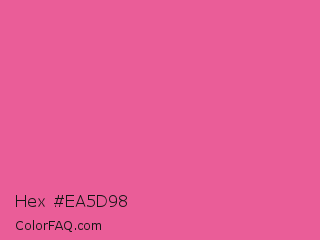 Hex #ea5d98 Color is a light rose color and the nearest color is Raspberry Pink #e25098. Hex code #ea5d98 and RGB value is rgb(234,93,152). In RGB color space, this color is composed of 92% red, 36% green, 60% blue, In CMYK color space, this color is composed of 0% cyan, 60% magenta, 35% yellow , 8% black , In HSL color space, this color has a hue angle of 335° , 77% saturation and 64% lightness.