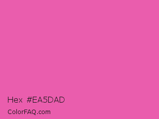 Hex #ea5dad Color is a light magenta color and the nearest color is Brilliant Rose #f653a6. Hex code #ea5dad and RGB value is rgb(234,93,173). In RGB color space, this color is composed of 92% red, 36% green, 68% blue, In CMYK color space, this color is composed of 0% cyan, 60% magenta, 26% yellow , 8% black , In HSL color space, this color has a hue angle of 326° , 77% saturation and 64% lightness.